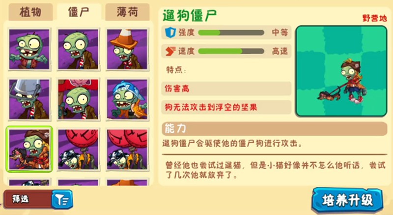 遛狗僵尸以340点血量和30移速演绎着犬齿交错的混战场景,其啃食1×3范围内植物的能力专克线性排列的防守阵容,开局遭遇时应立即投放坚果墙阻断,随后用杨桃发射器实施交叉火力覆盖。