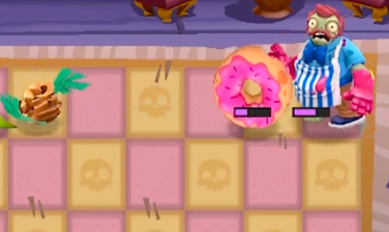 甜甜圈推手僵尸堪称中后期的大敌,本体285点血量加之700点的血牛级甜甜圈附件,配合150+1000的双重伤害数值,应对这对组合的最佳方案是分离战术,先用窝瓜单独击飞甜甜圈,再用玉米加农炮轰击落单的本体。