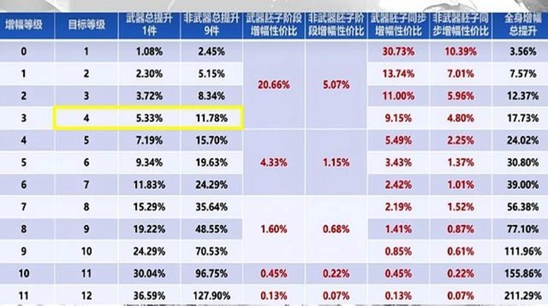 在《DNF手游》中,武器增幅到四级能带来5.3%的输出提升,而其他九个部位加起来才11.78%,单件增幅收益仅1.22%。因此,最划算的玩法是优先将武器强化到四级。虽然武器消耗的矛盾数量较多,但其带来的提升效果是其他部位的四到五倍。具体来说,武器从一级增幅到四级需要258个矛盾,其他部位单件需要191个,全身十件装备全部增幅四级总计消耗1977个矛盾。