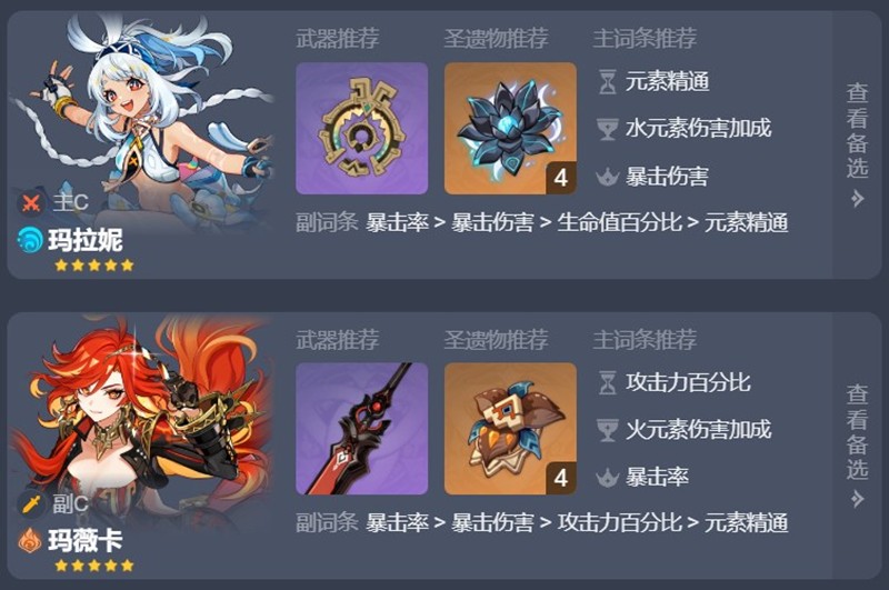 虽然玛拉妮蒸发队的搭配相对固定,但也有一些角色可以作为替代。例如,砂糖可以被万叶替换,但需要注意万叶的增伤效果与砂糖的精通加成有所不同。此外,如果缺少希诺宁,可以考虑使用芙芙或钟离等角色来提供生存能力,但整体输出效果可能会有所下降。