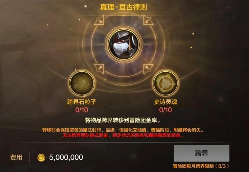 在装备跨界方面,跨界本命甲防具优先级最高,其次是首饰,最后才是武器。玩家在准备史诗跨界时,应优先考虑跨界真学套部位,即便是凑够三件套史诗部位,也能打出高额的伤害。简单来说,只要忍得住寂寞,只考虑跨界真学套,就能将跨界石粒子的收益发挥到最大。