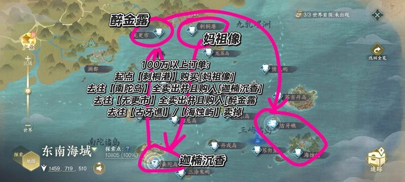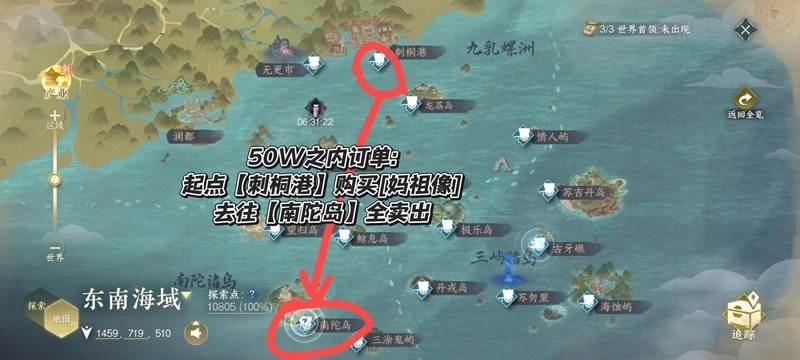 去往【南陀岛】全卖出并且购入[迦楠沉香]