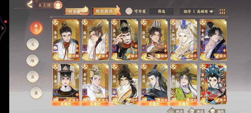 激活增益工具人:戚继光、徐霞客(仅满级,其他未培养)