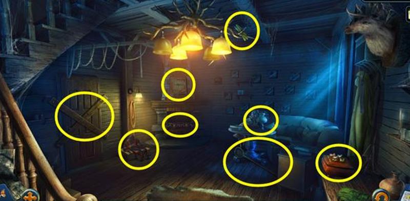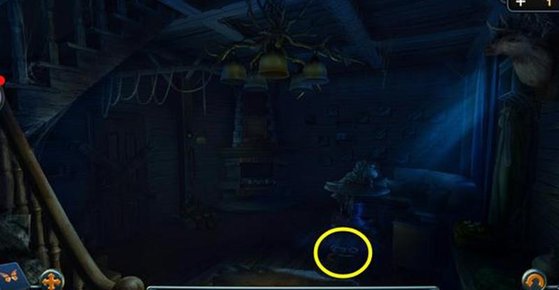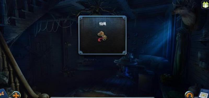 点击燃尽的火炉处可以获得煤块。拾取地上的捕虫网,用它勾下灯饰右边的蜻蜓。点击火炉上方的相框,将蜻蜓放入相框内,会发现需要图案标注。