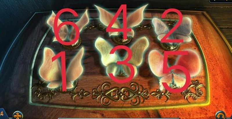回到房子场景后,灯泡会照亮室内,在左边箱子上可以获得潜水服。点击右边台子上的蝴蝶盒子进入小游戏,需要按照特定顺序点击蝴蝶,正确顺序是从上横往下横依次点击6、4、2、1、3、5,完成游戏后获得碑块。