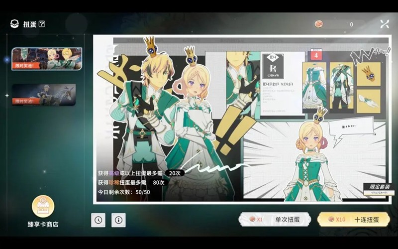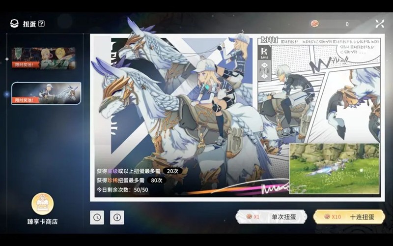星痕共鸣的扭蛋抽奖有保底次数,如果一直没有获得扭蛋珍稀奖品,在扭蛋抽奖次数达到保底次数后,会 100%抽中本期奖池的珍稀奖品。目前卡池是最多 20 抽必出高级以上物品,最多 80 抽必出珍惜以上物品,每日最多抽取 50 次。