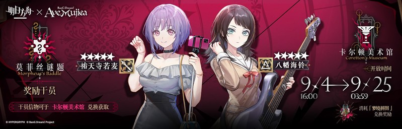 本次明日方舟AveMujica联动活动名为无忧梦,从9月4日1600开始,一直持续到9月25日0359结束。想要参与活动的玩家,需要先通关主线剧情1-10才能解锁进入资格。活动关卡分为两部分,9月4日会先开启万般皆梦章节,到9月11日再解锁拥抱命运章节。活动剧情需要在活动期间内体验,结束后会收录到情报处理室里。