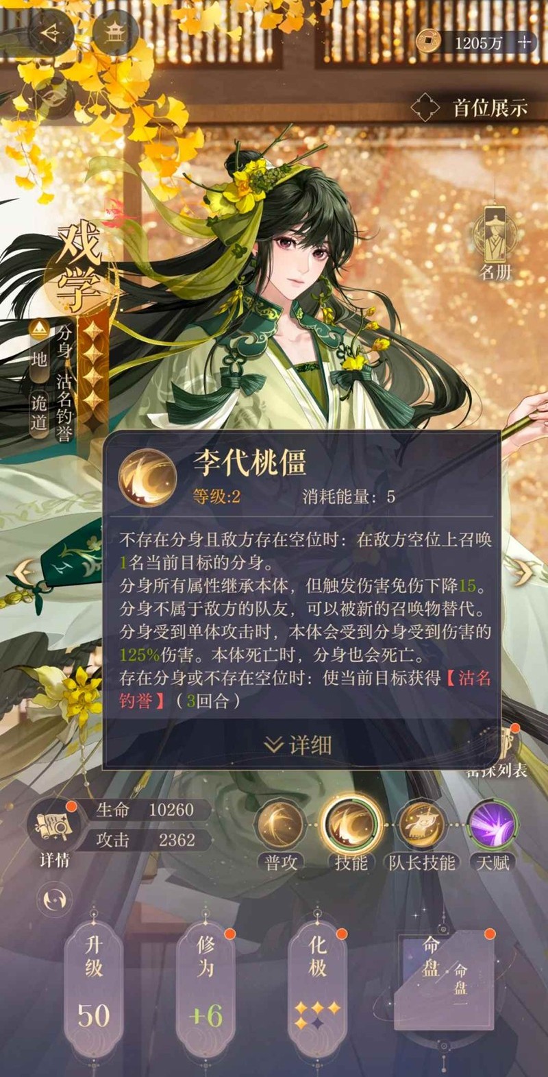也算是戏学使用的冷门小知识(?),首先我们要看一下戏学的技能说明,开分身的时候是可以复制本体状态属性,那么这代表了本体带水抗也是可以复制过来的,按照这个思路接下来在兰台进行了测试。