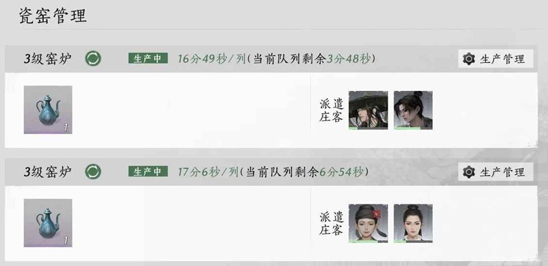 2条蓝釉执壶,每条队列安排1人可以2人也行,烧瓷产能是比较溢出的。顺便完成制作650个8级瓷器的篇章任务。