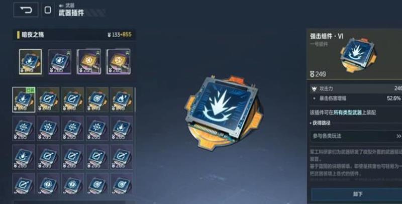 暗夜之殇作为逆战手游中的高暴击率武器,不需要额外叠加暴击概率,直接提升暴击伤害即可。每次暴击时子弹都能造成较高的伤害上限,建议不要选择暴击组件,避免属性浪费。使用2号插件可以在短时间内快速打完36发子弹,更换子弹的速度直接影响连续输出效率,后续还需要尽快升级装备。