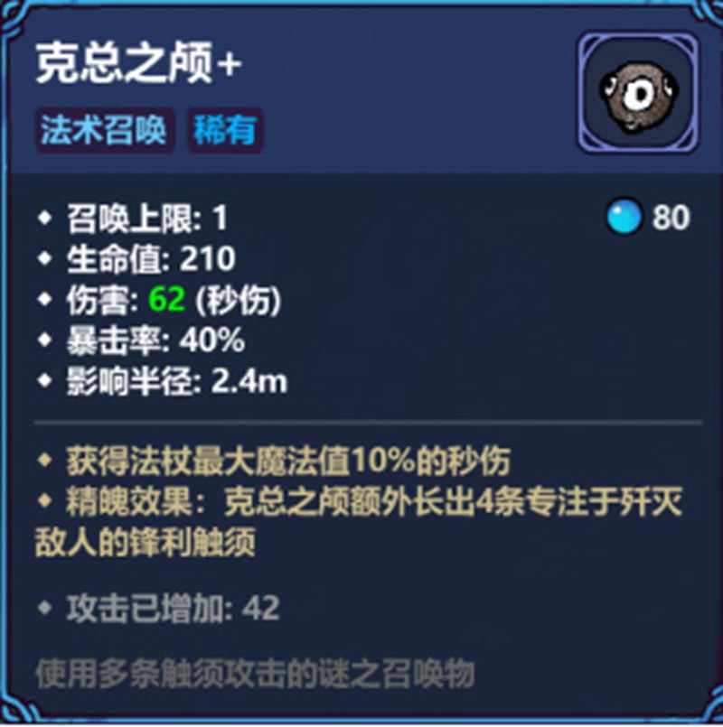 魔法工艺的融合召唤玩法是游戏中一个极具特色的系统,能够大幅提升角色的战斗表现。玩家在使用克总之颅时,如果不搭配融合召唤,只能依靠四条触须进行攻击,且召唤上限仅为一个。而当加入融合召唤后,角色可以解锁双头形态,触须数量增加至八条,并激活精魄效果,最终形成16臂配置,大幅提升攻击频率和范围。这种机制让克总之颅在面对大量敌人时更具优势。