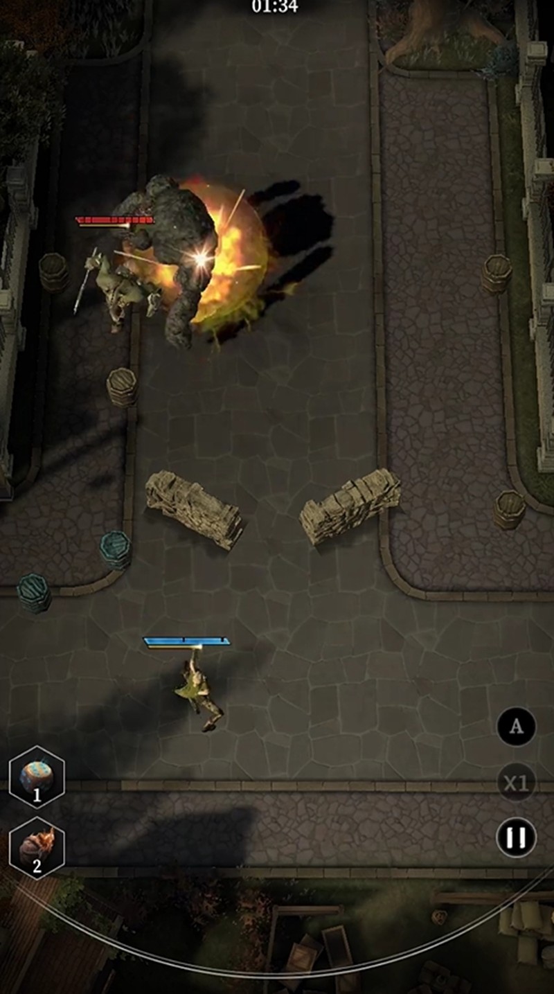 击退桶在点击后会生成一个石头人,它会根据怪物的位置将敌人击飞,而爆炸桶则会在触发后对周围造成伤害。玩家需要将角色放置在安全区域,避免被爆炸波及。当怪物靠近击退桶时,及时点击触发效果,将其推向下一个击退桶的位置。整个过程需要精准判断怪物的移动路线,确保每次击退都能将敌人引导至爆炸桶附近。