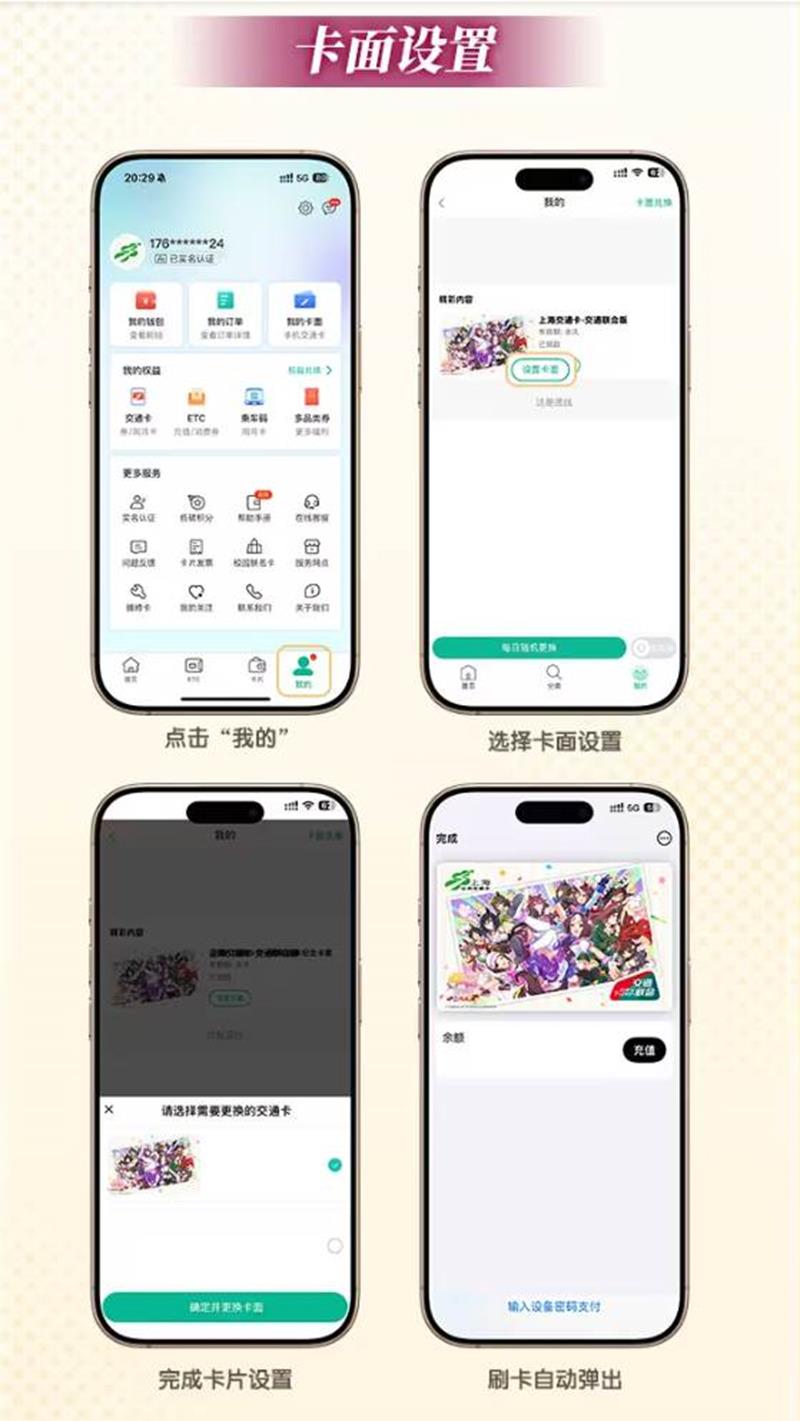 3.通过以上步骤,玩家可以顺利领取并设置《闪耀优俊少女》1周年纪念交通卡卡面。快来参与活动,领取属于你的专属卡面吧!