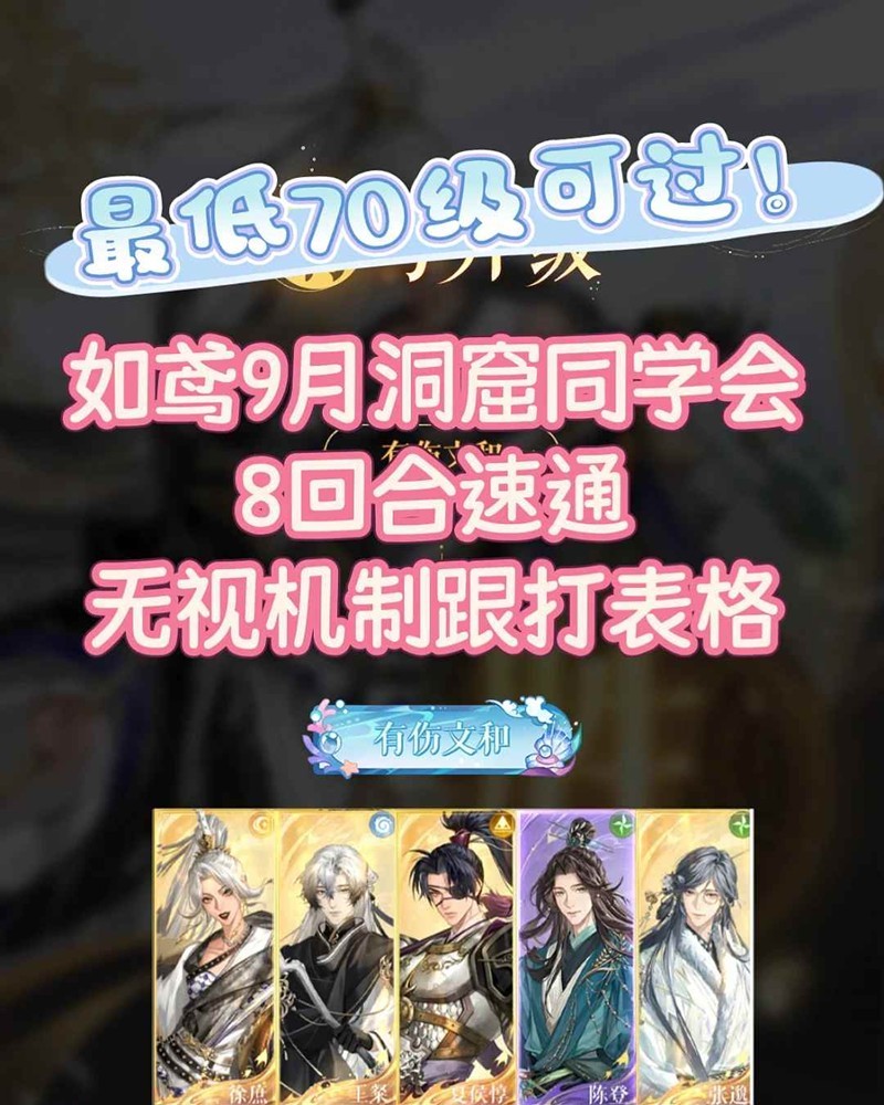 以上就是如鸢9月洞窟8回合逃课,无视机制低练速通攻略的全部内容了,更多游戏资讯,攻略内容敬请关注切游网,您的支持是我们努力的动力!