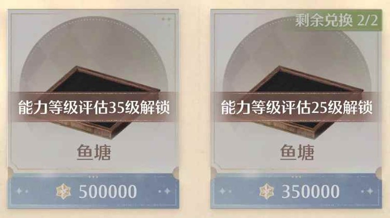 另外一点,能力等级评估35级可以无限购买小型田地和鱼塘(虽然很贵,不知道到时候买不买得起)