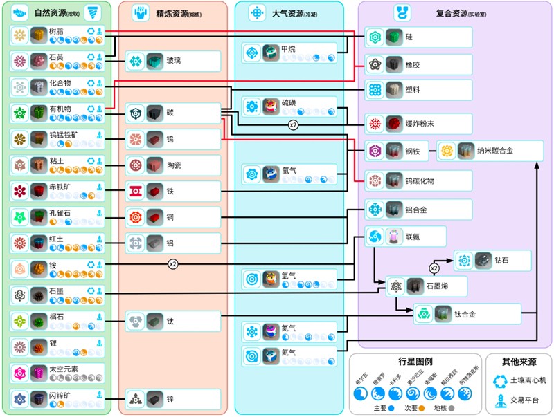 除了自然采集,生产设施在资源转化中扮演重要角色。大气冷凝机可以提取多种气体,熔炉则能将原始材料冶炼成金属或玻璃。土壤分离机在游戏早期阶段尤为关键,能够快速分离出多种基础资源。值得注意的是,铵虽然看似普通,却是后期高科技研发的重要耗材,建议玩家尽早建立专门的采集流水线。