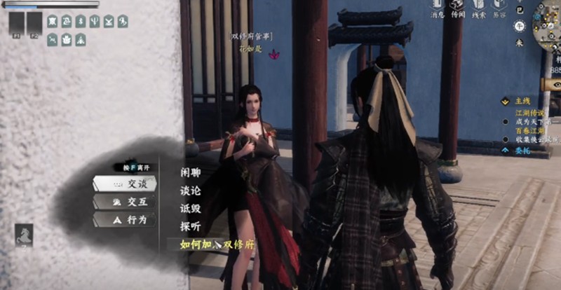 任务完成后,玩家将面临入门考验,内容是使用暗器击败三个指定敌人。敌人的强度较低,建议准备基础暗器即可。完成考验后,玩家需要找到谷主夫人进行对话,并选择“包子我身上”作为暗号,从而正式加入双修府,成为外门弟子。