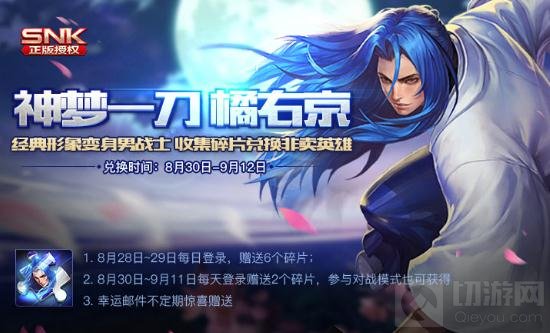 1. SNK男神:橘右京登场,兑换火热进行时!