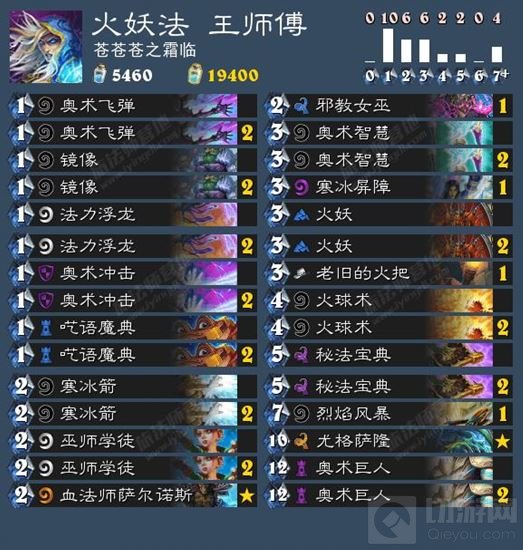 这套是王师傅加入了魔典的卡组,也是大家非常熟悉社会主义火妖法。奥术巨人并没有德鲁伊那样的好用,不过有时可以给对面惊喜也不错。