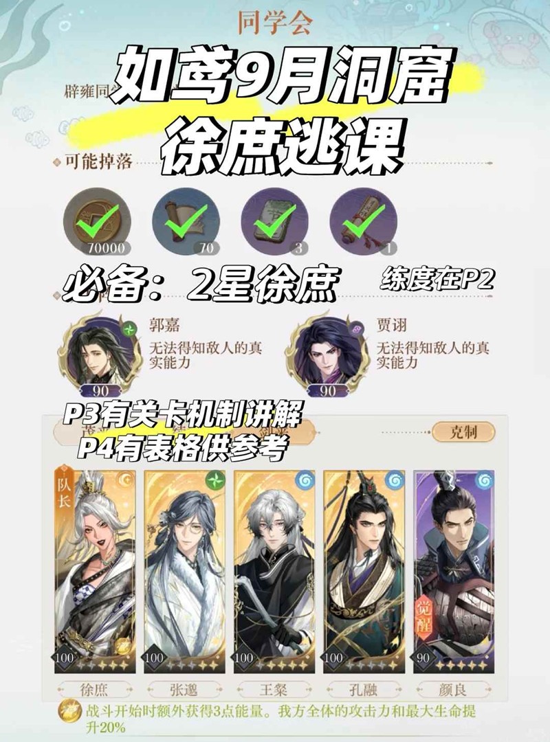 以上就是如鸢9月洞窟同学会怎么打,徐庶逃课洞窟攻略的全部内容了,更多游戏资讯,攻略内容敬请关注切游网,您的支持是我们努力的动力!