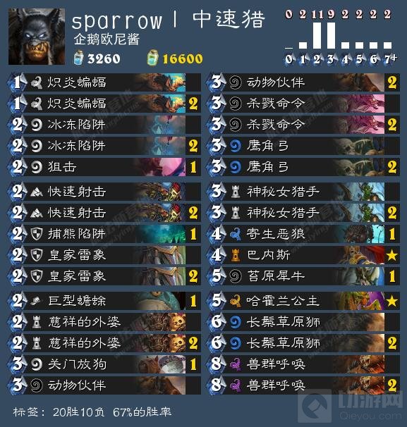 卡组介绍:国服目前上传说的时候,会遇到很多战士,那么中速猎不失为一种极好的选择。那么中速奥秘猎想必也不错。这套牌还带了公主,那么问题来了,我的问题是什么呢。