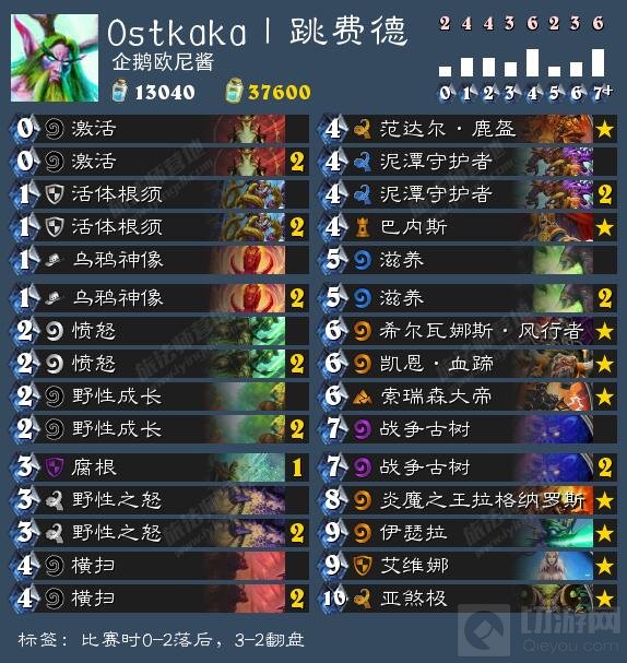卡组介绍:目前比赛有点亮眼的卡组,绝地大翻盘的卡组。起手留激活成长愤怒,此外,对萨满留根须和腐根,对术士留根须和横扫,先默认对手是打脸萨和动物园。