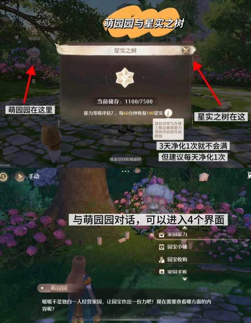 净化可得星实,容量上限和生成速度与能力等级有关,一般3天还没存满,每天顺手净化一下更不会满