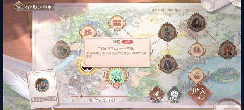 时空中的绘旅人限时返场,采风异度之旅今日开启~9月6日 - 9月13日,采风「异度之旅」限时返场,参与活动可得限定头像、[觉悟]等珍贵奖励。每个世界都有强敌看守,存在一定难度,培养并合理派遣画灵或阅读关卡小纸条提示,可更快通关哦~一起来和小编看看吧~