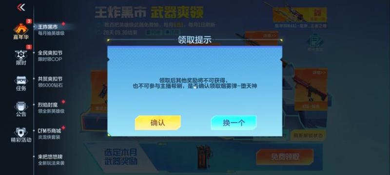 CFer确认领取本月福利武器后,该武器将通过邮件发放,且此后不会在后续刷新中再次出现,保证你可以抽取到更多不同的武器!如果不满意本月的奖励,可以等待主播帮刷的活动。但这里需要先完成本月6次开门操作,且6个门内展示的奖励均未领取,否则主播无法帮刷。