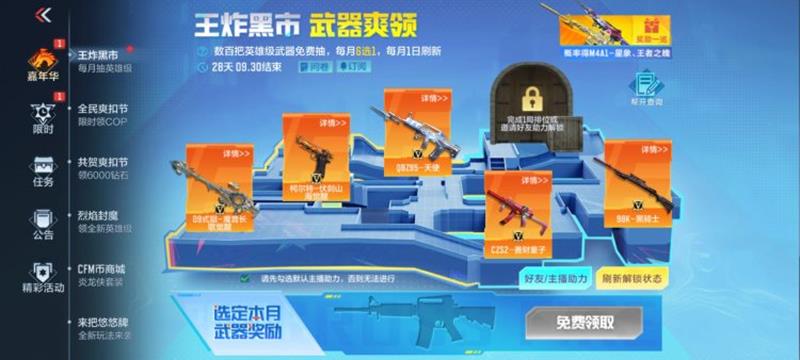本次王炸黑市每月会有6个中门,点击中门后一颗“龟内”将其炸开,然后揭开武器的神秘面纱。而每月默认拥有3次开门机会,登录游戏即可直接获取。CFer们可通过完成排位对局,或邀请好友助力,再得3次额外开门机会,也就是每月最多可拥有6次基础抽取机会。