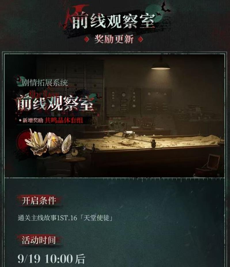 新增奖励共鸣晶体套组,活动时间为9月19日10:00后。