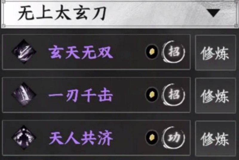 无上太玄刀是一款以群体攻击为主的刀法,一技能“玄天无双”可以将敌人聚集在一起,造成范围伤害。二技能“一任千击”则会根据受到的攻击次数增加伤害值,让玩家在持续战斗中逐渐积累优势。这种刀法适合面对多个敌人时使用,能够有效控制战场局势。