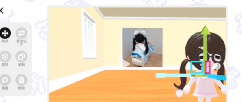 由于角色形象会出现在房间内,新放置的图片可能会被角色遮挡。这时需要将角色移动到不会遮挡图片的位置。完成这个步骤后返回游戏主界面,点击左上角的个人头像进入编辑个人资料页面。