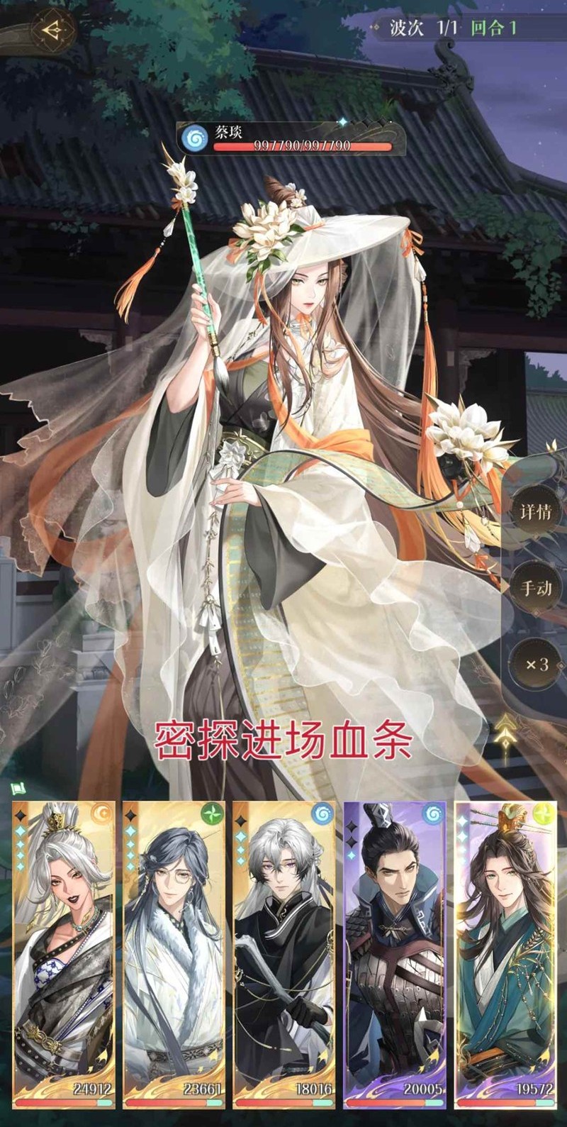 4. 我方目标密探身上的【记录】数量需要控制在6点以内,否则达到6点【记录】蔡琰会对我方全体密探打出高额伤害,站不住