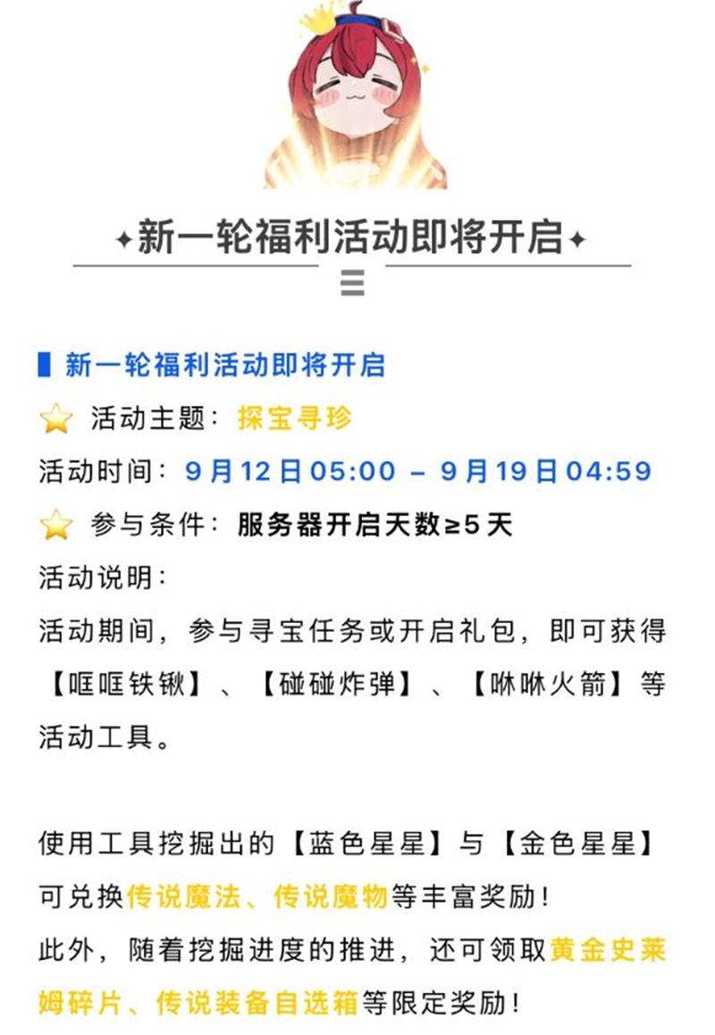活动期间,参与寻宝任务或开启礼包,即可获得【哐哐铁锹】、【碰碰炸弹】、【咻咻火箭】等活动工具。使用工具挖掘出的【蓝色星星】与【金色星星】可兑换传说魔法、传说魔物等丰富奖励!