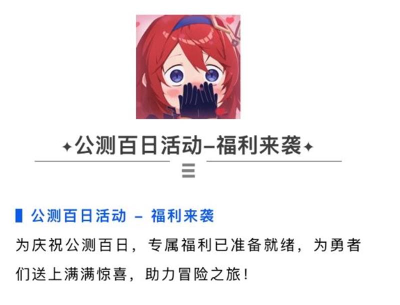 为庆祝公测百日,专属福利已准备就绪,为勇者们送上满满惊喜,助力冒险之旅!