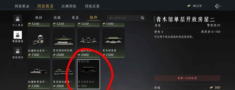 已知共5种产业可以放置青木馆单层开放房屋二,包括住宅2个,曲香坊,瓷窑,不羡仙,松鹤居。每个产业可以放置青木馆单层开放房屋二上限为50个,松鹤居只能摆47个就上限了,原因未知。