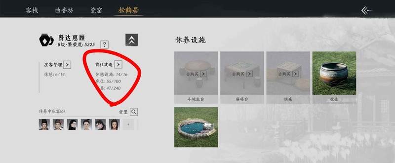 这时可以堆叠浴桶或投壶(每周购买上限均为20) ,可以放置在住宅(每个住宅共用20休憩设施上限)和松鹤居(根据松鹤居等级不同,可放置休憩设施数量不同,8级可放16个)。