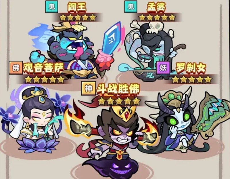 暴击队是当前版本中表现最为均衡的一套阵容,它在输出、控制和生存方面都有出色的表现。这套阵容由罗、孟婆、观音、斗战胜佛以及罗刹女组成,其中阎罗与斗战胜佛是主要的输出核心。孟婆的霜降技能可以为队伍提供减速效果,而观音则能通过回血和增益提升团队续航能力。整体来看,暴击队适合大多数战斗场景,且角色获取门槛较低,非常适合新手或资源有限的玩家。