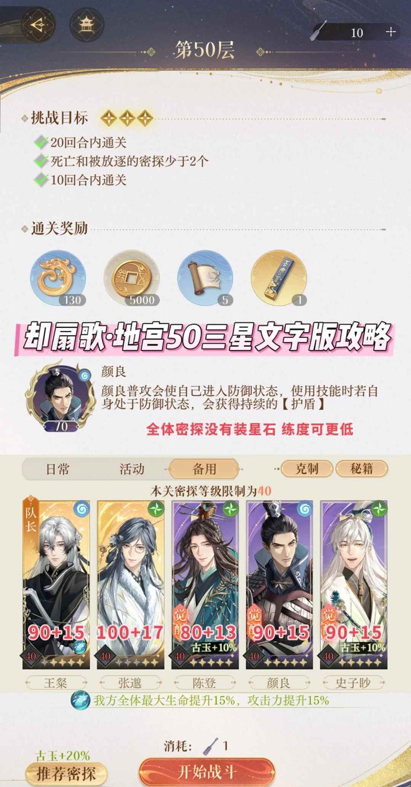 以上就是如鸢袁基地宫却扇歌·地宫50三星文字版攻略的全部内容了,更多游戏资讯,攻略内容敬请关注切游网,您的支持是我们努力的动力!