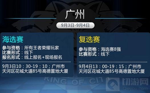 激昂的战鼓擂动是否让你心生向往,高亢的集结号角是否让你热血沸腾?9月3日,第二届王者城市赛首站梦回广州,燃点王者激情,共品荣耀盛宴!突破平庸的生活,掌握爆发的节奏,广州站邀你前来战出前所未有的激情,精彩不容错过!