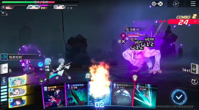 在剧情模式中,玩家需要通过一系列关卡推进故事发展,每个关卡都会带来不同的挑战和奖励。战斗过程中,玩家可以使用卡牌进行攻击和技能释放,每张卡牌都有特定的效果和消耗。角色在使用奥义时会消耗EP点,而EP点则通过使用卡牌获得。当角色发动最终奥义后,还会触发一次额外攻击,这使得战斗节奏更加紧凑,效率也大幅提升。