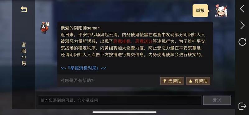 决战平安京官方一直致力于为各位阴阳师大人提供更好的游戏环境,包括但不限于对游戏中的不良竞技行为加大处罚力度,持续完善举报系统和提高举报反馈速度等。