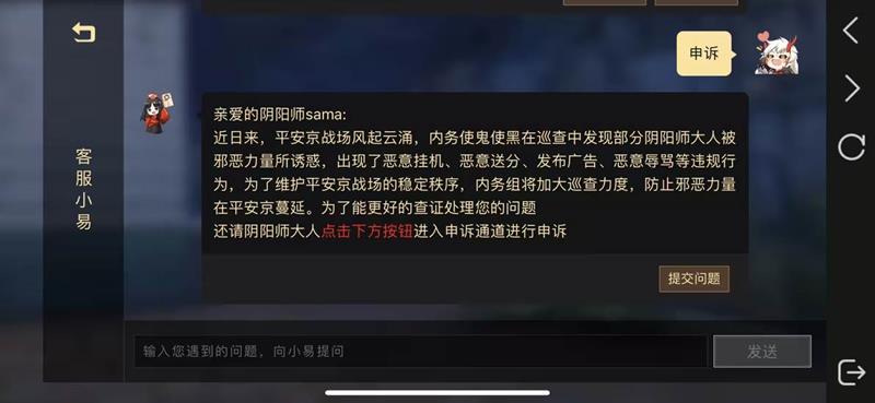 以上就是决战平安京被封号怎么申诉决战平安京账号申诉流程攻略介绍 全部内容了,更多游戏资讯,攻略内容敬请关注切游网,您的支持是我们努力的动力!