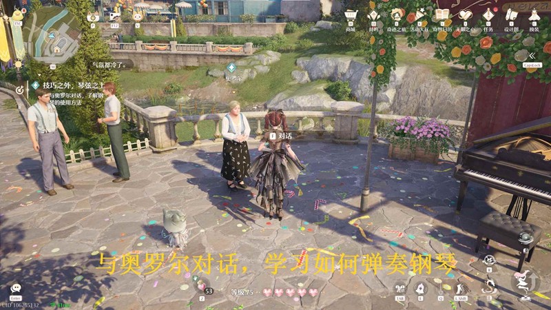 和奥罗尔对话,了解钢琴的使用方法;