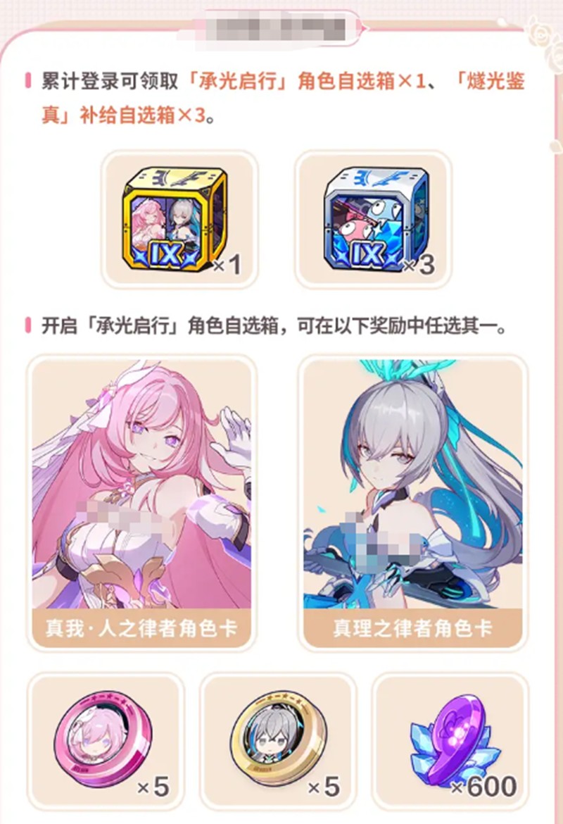 角色获取福利还涵盖核心律者角色免费选与星币兑换限定角色两种,对于尚未拥有人之律者或真理律者的玩家,活动期间可通过指定界面免费二选一获取,这两位角色均为当前版本主流阵容的核心,能快速提升队伍战斗力,尤其适合新玩家或阵容尚未完善的玩家,此外在周年庆专属补给活动中,玩家每进行一定次数的补给,可额外获得九周年星币,积累足够星币后可在兑换商店中兑换限定角色瑟莉姆,这个角色可以丰富玩家的角色库。