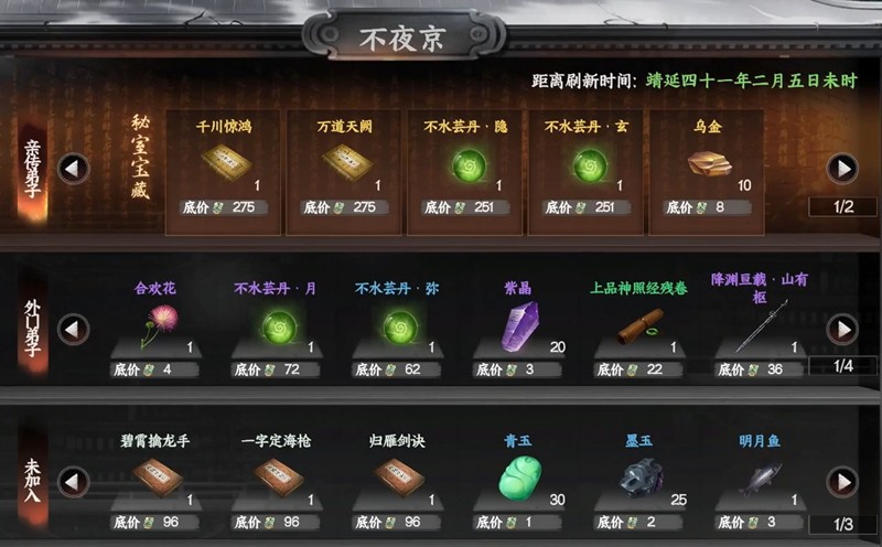 不夜京是游戏中一个中立门派,玩家需要让兵道属性达到100,枪棍属性达到80才能加入。在坐标(1028,328)附近找到赵长歌即可入门。这个门派最大的特点是不影响玩家加入其他门派,同时还能获得捕快身份,接取任务清理江湖败类,通过贡献值可以获取千川惊鸿和万道天阙两本金色武学,非常适合喜欢多线发展的玩家。