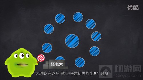 大球吃完以后,就会被强制再炸出9个分身,等于说吃了刺,你的体重和积分增加了一倍,但是你会被强制分裂成10个小球,可以说痛并快乐着。