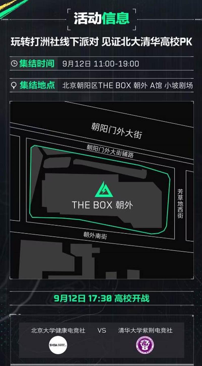 9月12日,让我们相约北京,共同见证这场电竞盛事的开启。不是高校学生也能到现场玩,但高校认证加入打洲社的玩家有高校周边奖励。周边数量有限,先到先得,快来参与吧!