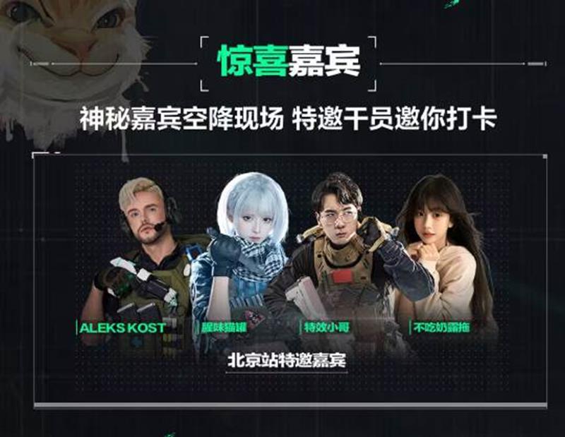 本次赛事神秘嘉宾空降现场,特邀千员邀你打卡,包括ALEXKOST、颜味猫猫、特效小哥、不吃奶油猪等。完成隐藏任务,领取限量周边,包括三角洲COSER、洲选之人、最抽象打洲人等任务。